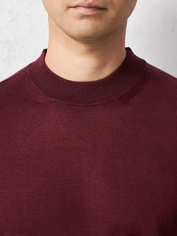 【リッケンバッカーブラック】 梳毛モックネックセーター カジュアルインナー ニット 長袖 保温 秋冬