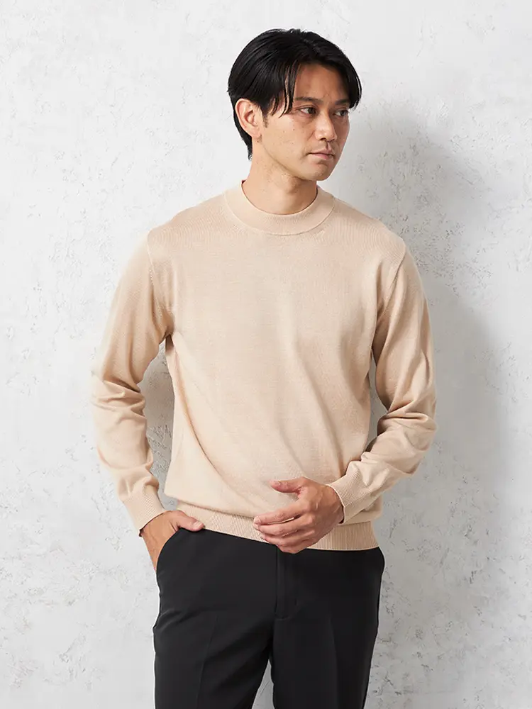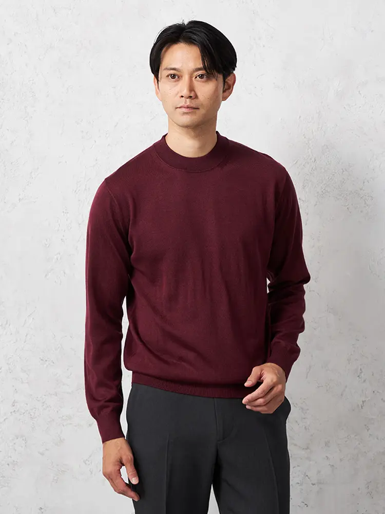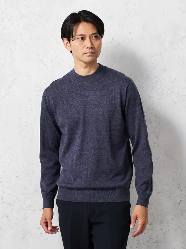 モックネックの首元が特長で保温性もあり、あたたかく着られます。