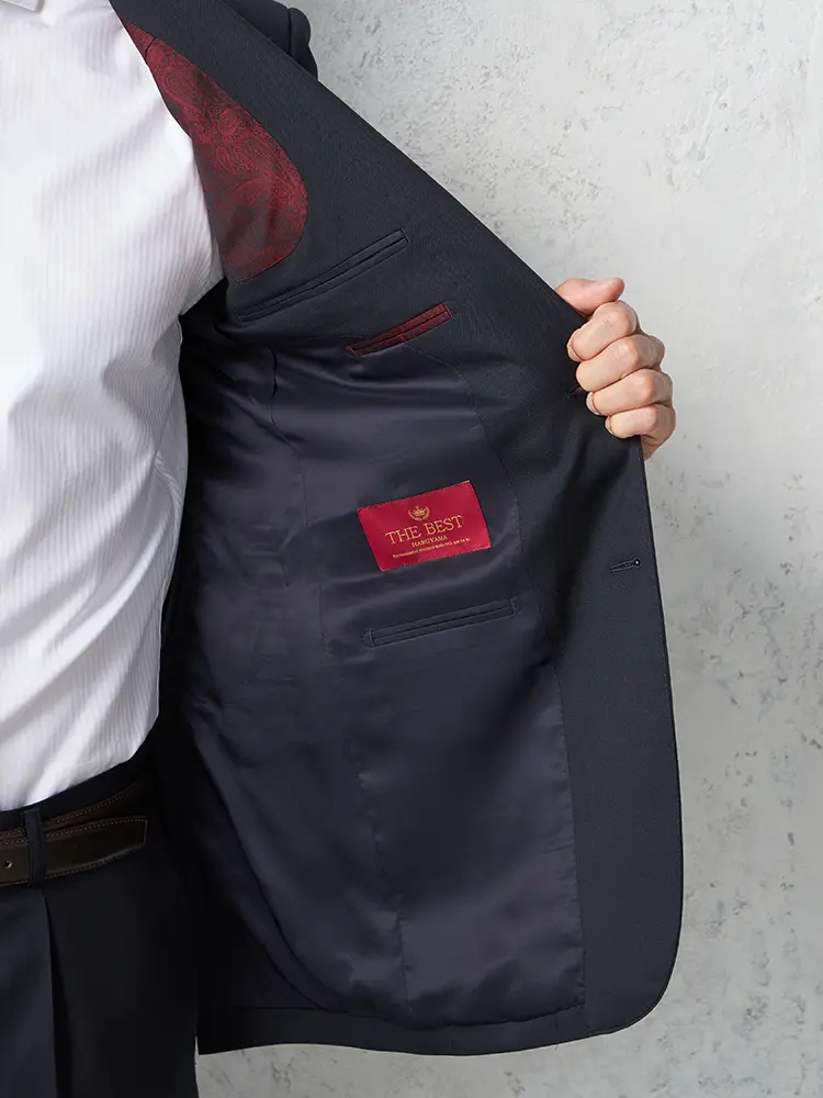 上着は型くずれしにくい総毛芯仕立て、胴裏、袖裏にはキュプラを使用。