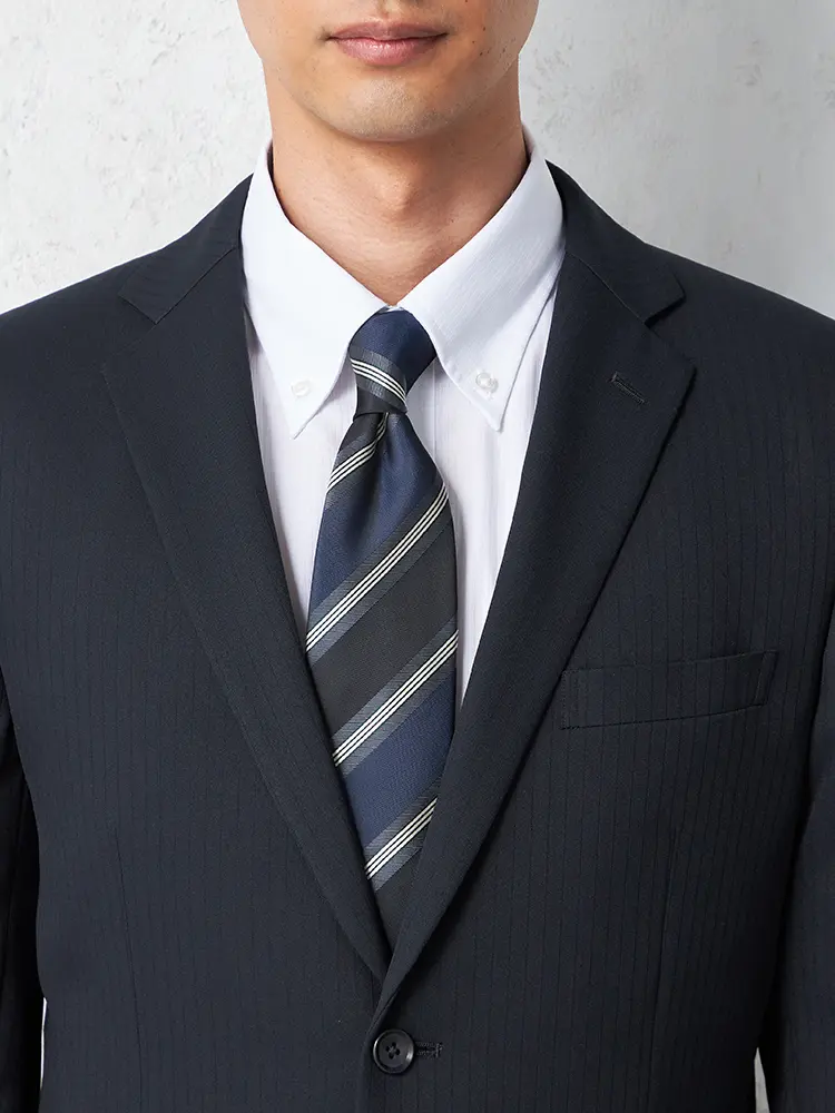 【即納】【WEB限定】スーツ2つボタンネイビーシャドウストライプ上下ウォッシャブル3シーズン対応