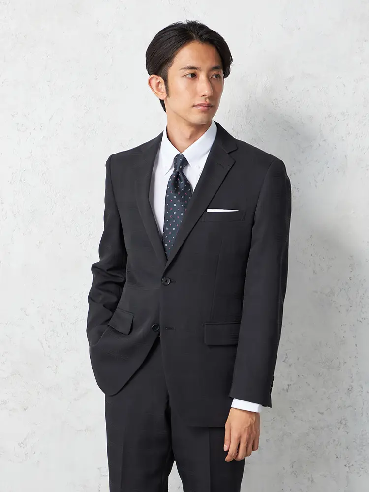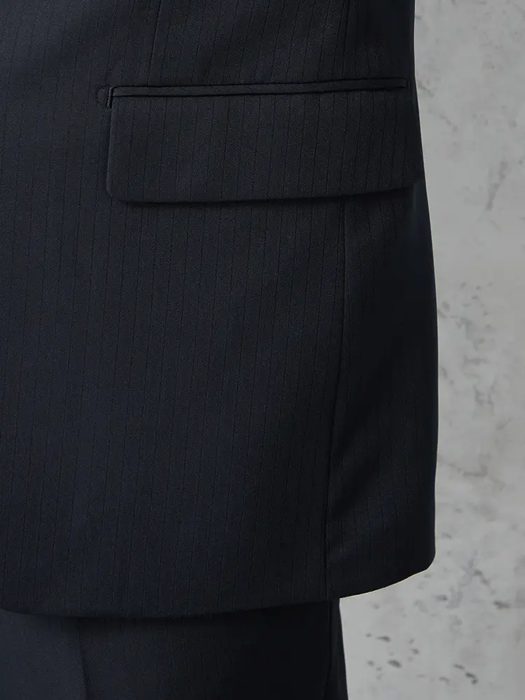 【即納】【WEB限定】スーツ2つボタンブラックシャドウストライプ上下ウォッシャブル3シーズン対応