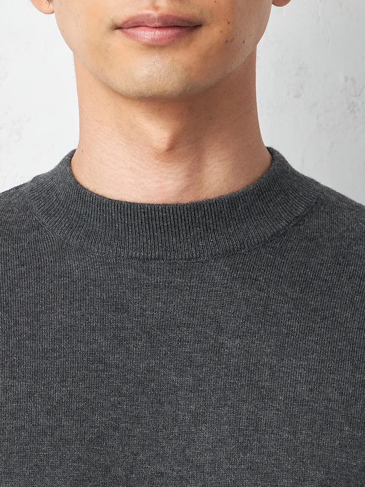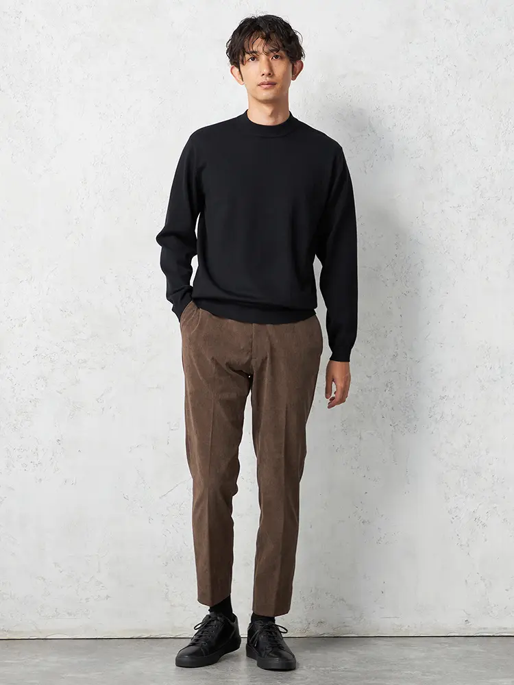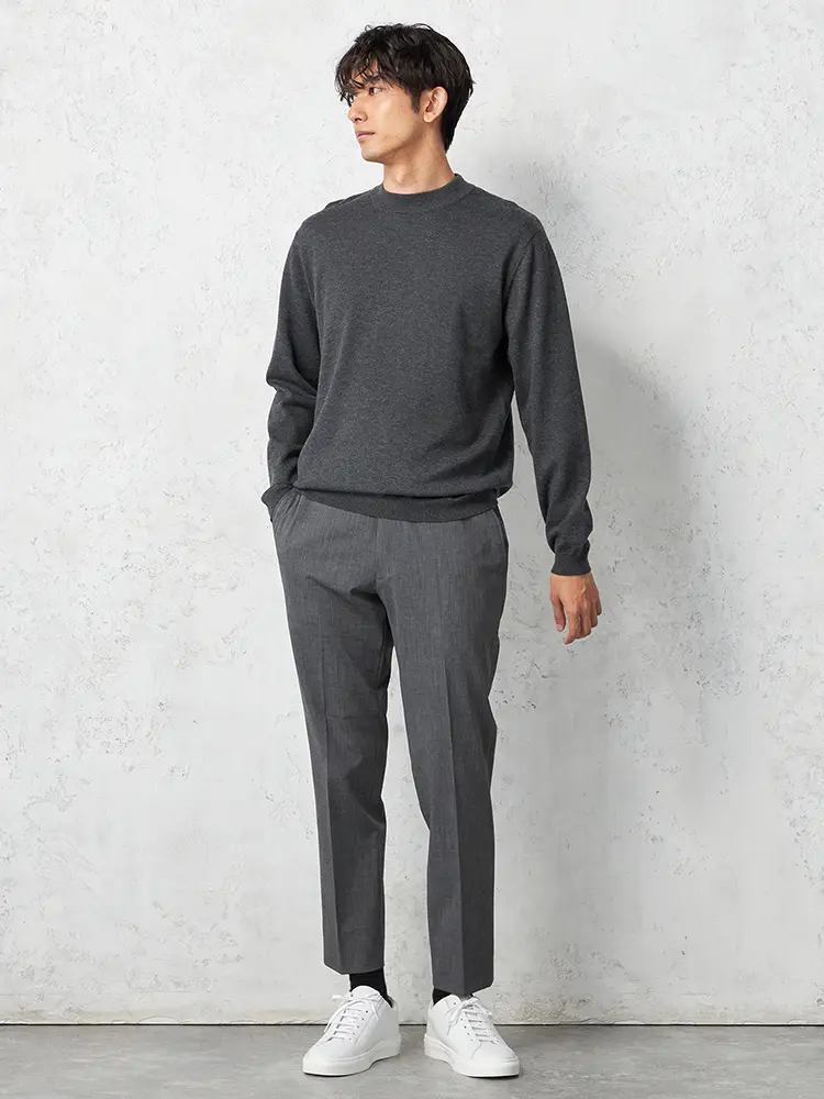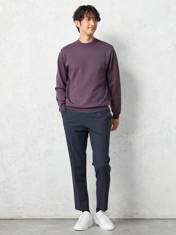 寒い季節にも快適に過ごすため、吸湿発熱素材を使用したモックネックロングスリーブニット。