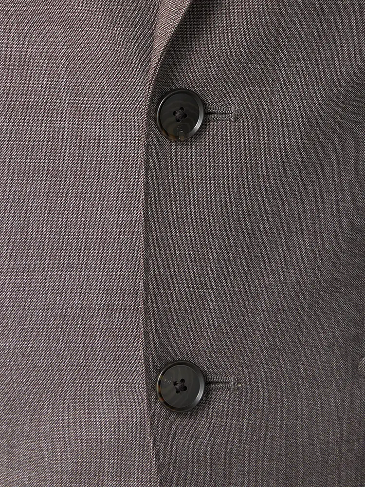 毛芯仕上げのラペルやAMFステッチなど、細部までこだわった作り。