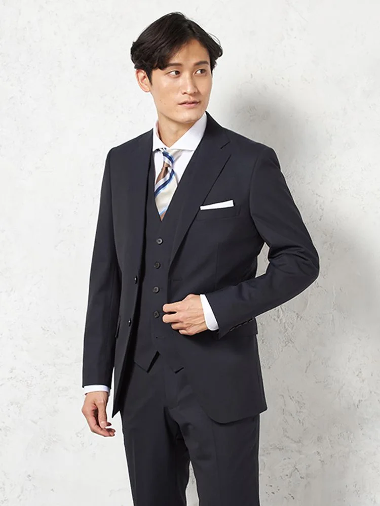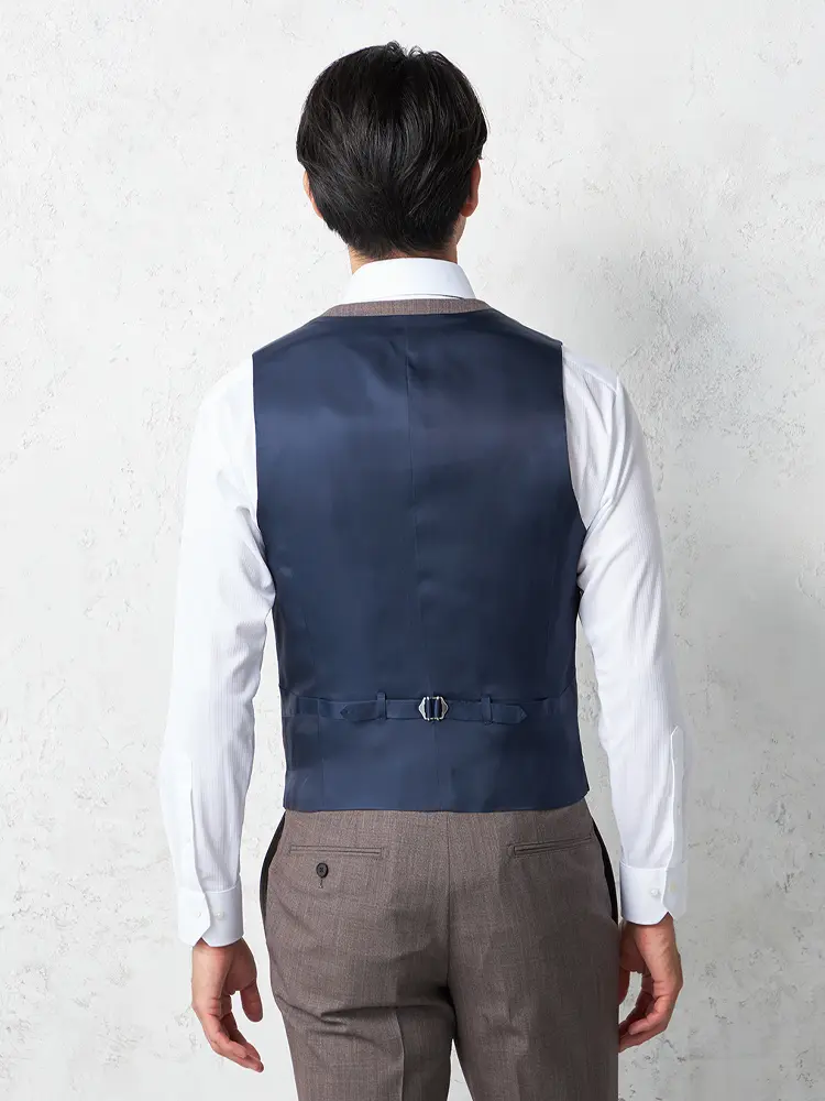 2WAYストレッチ生地に、ジャケットとベストのキュプラの裏地など着心地も快適です。
