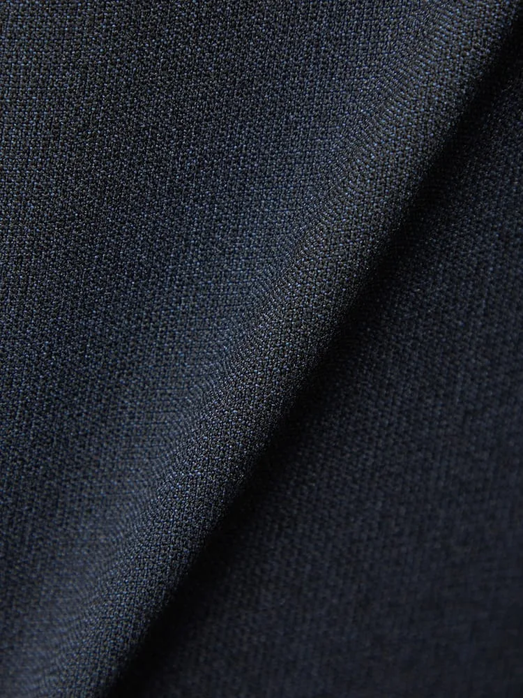 ビジネスシーンでもオケージョンでも活躍するネイビーの無地のスリーピーススーツ