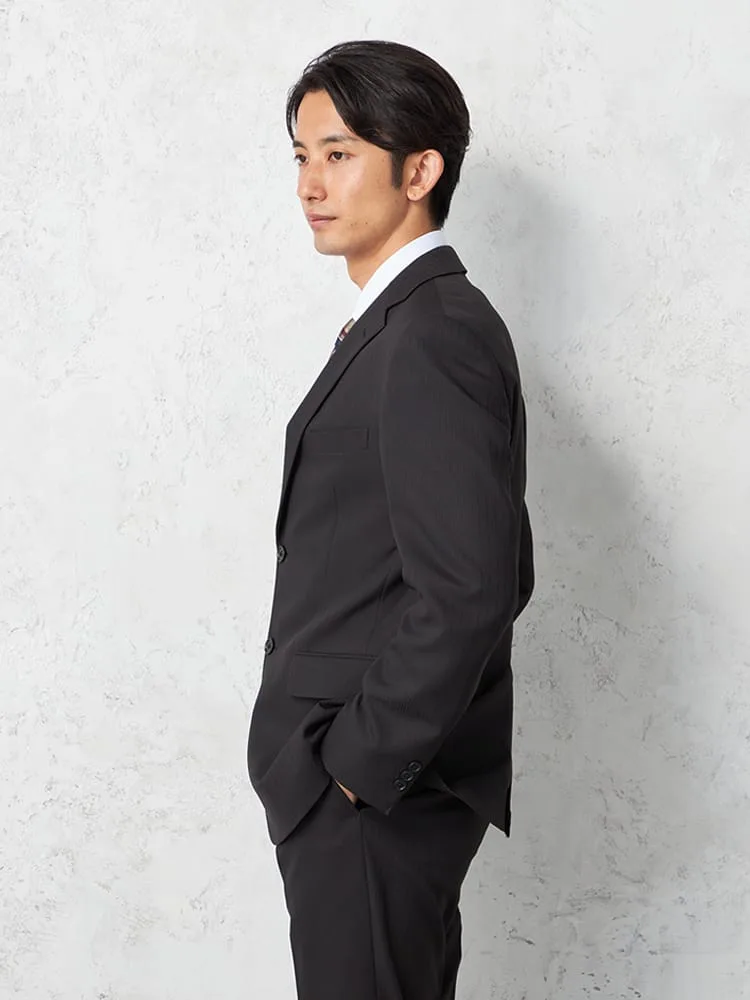 抜群のストレッチ性と嬉しいウォッシャブル機能付きのスーツは会議からテレワークまであらゆるシーンで活躍します。