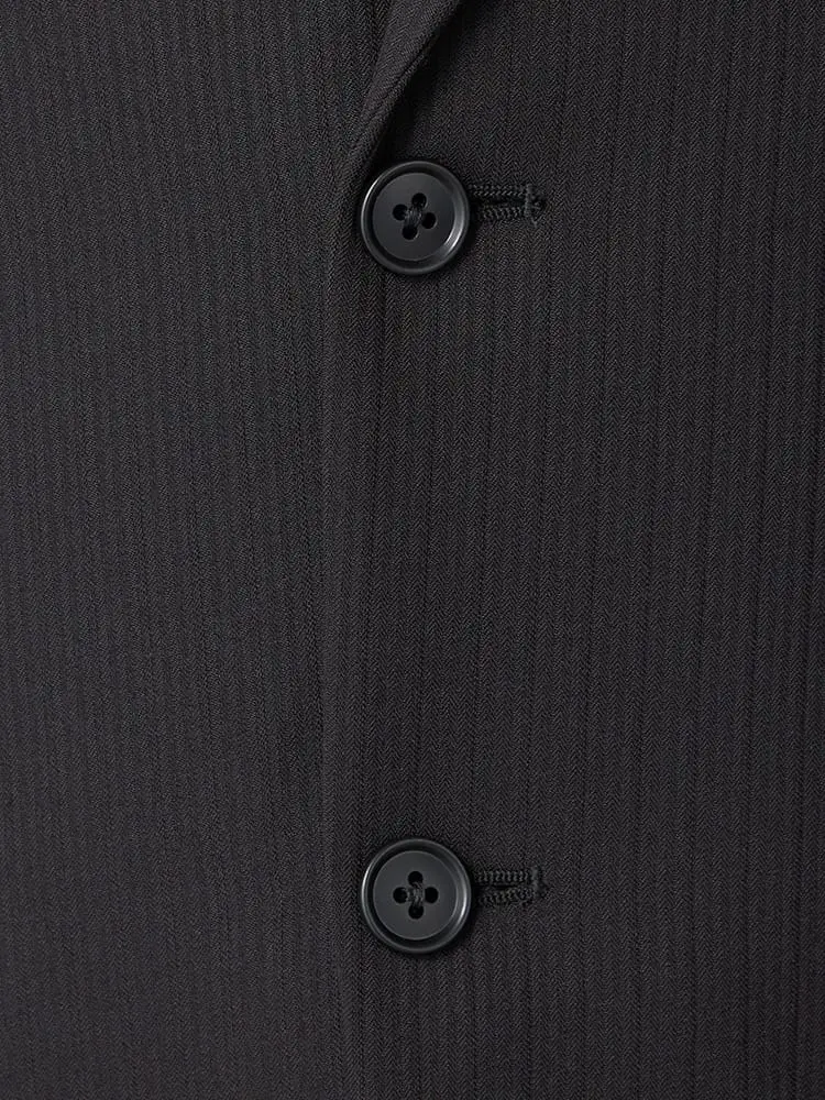 落ち着いた雰囲気のブラック×シャープなストライプ柄のスーツ