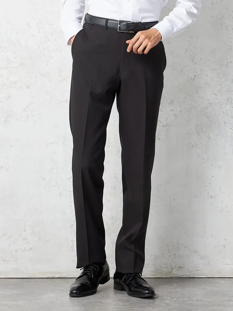 パンツの腰回りに生地の折り込みがなく、スッキリとしたシルエットを実現します。シンプルで洗練された印象を与え、すっきりとした着こなしが可能です。