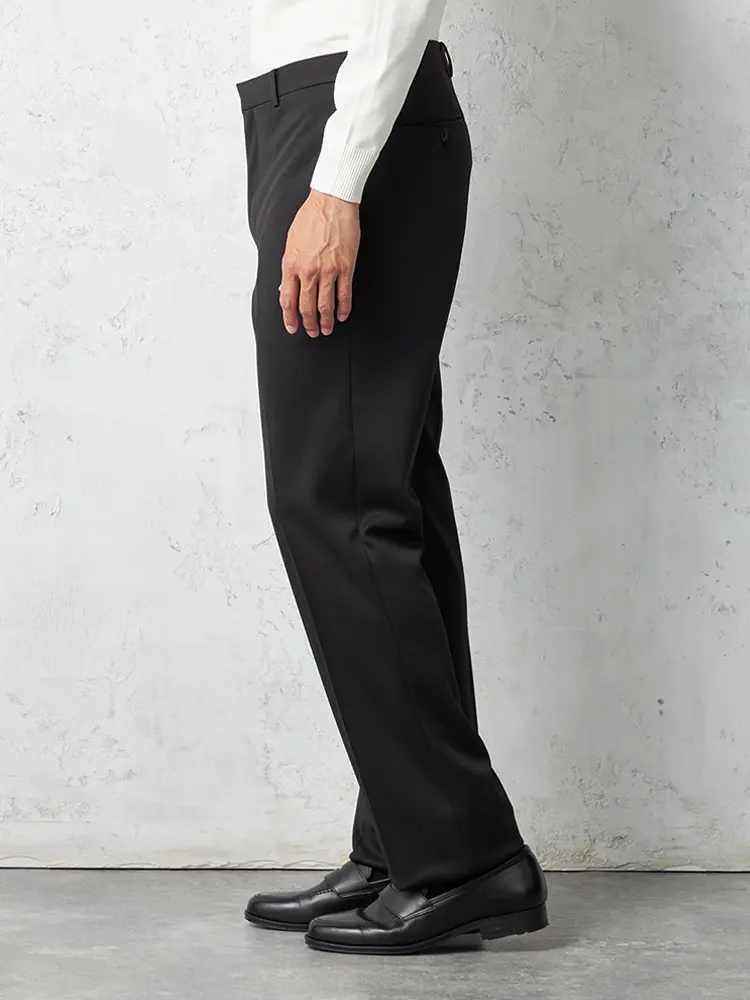 ノータックの腰回りやセンタープレスによって、スマートに穿きこなせます。