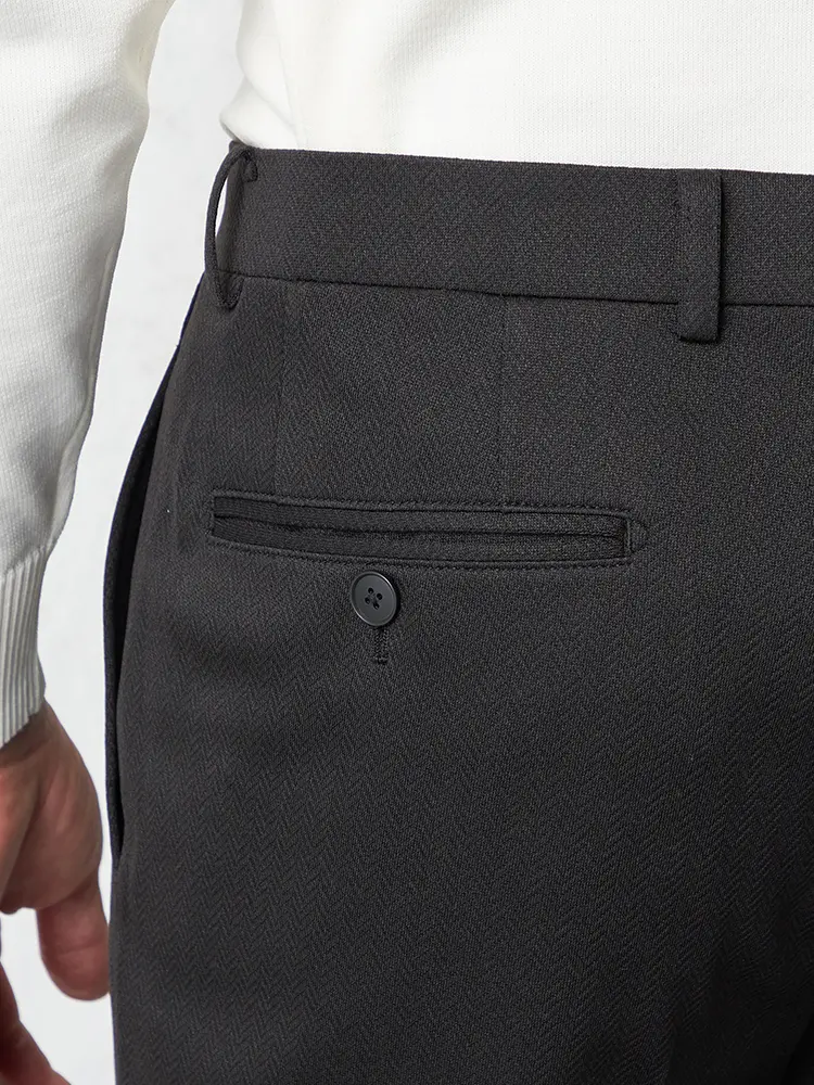 ヒップポケットは両玉縁で仕上げており、後ろ姿もキレイ目の印象です。