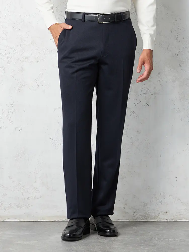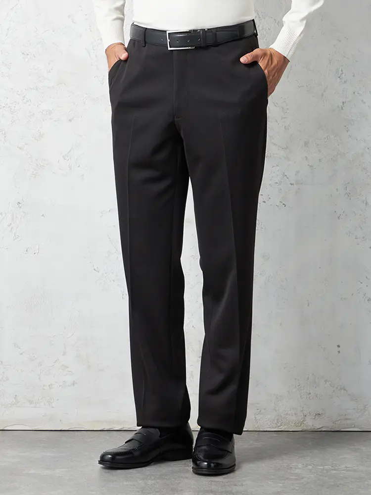 【ウォッシャブル】パンツ スラックス ノータック スリム 織柄無地 nero【スリムデザイン】