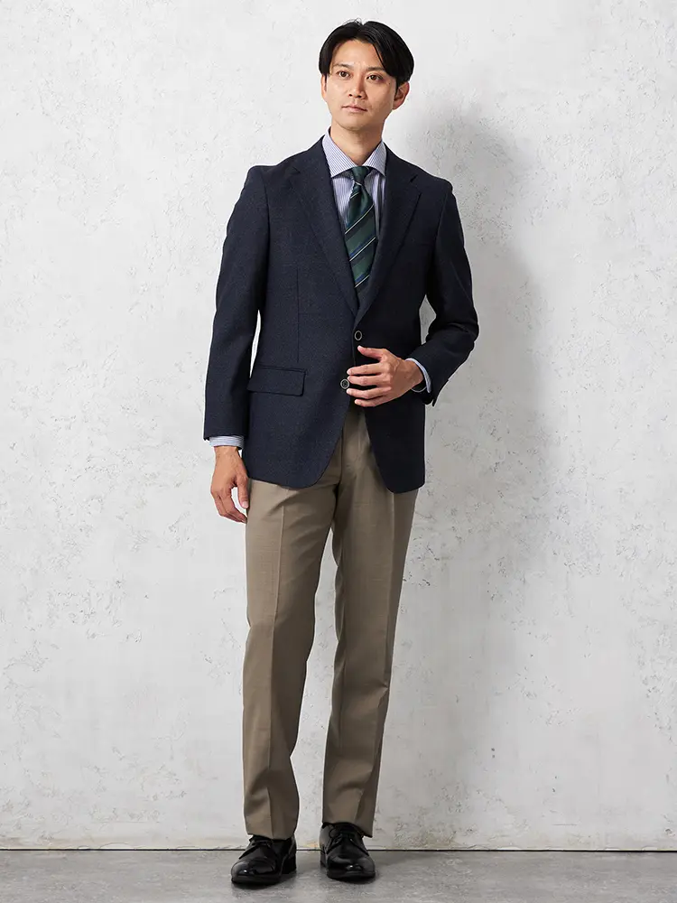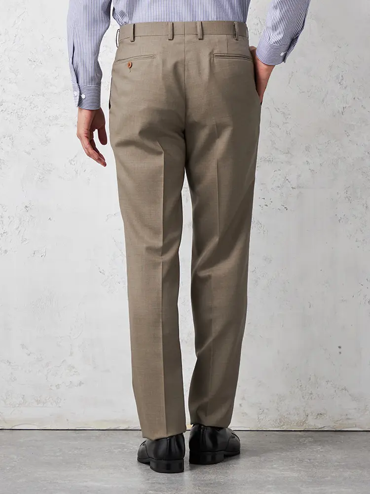 ビジネススタイルの定番にしたいイタリアマルラーネ社製ウール生地で仕上げたワンタックウエスト伸縮機能のスラックス。
