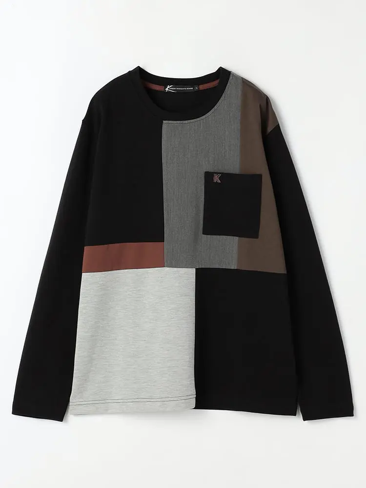異素材で切り替えた長袖Tシャツです。