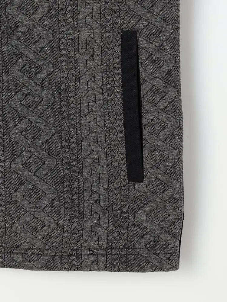 カットソー素材と異素材切り替えのメリハリがモードな印象のジップベスト。