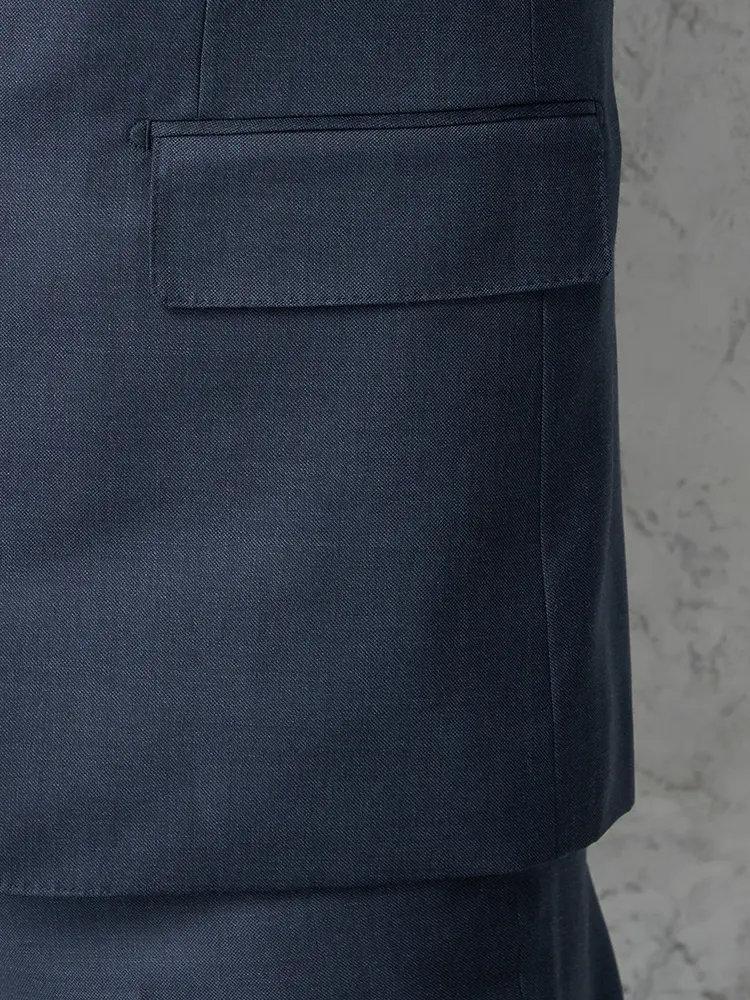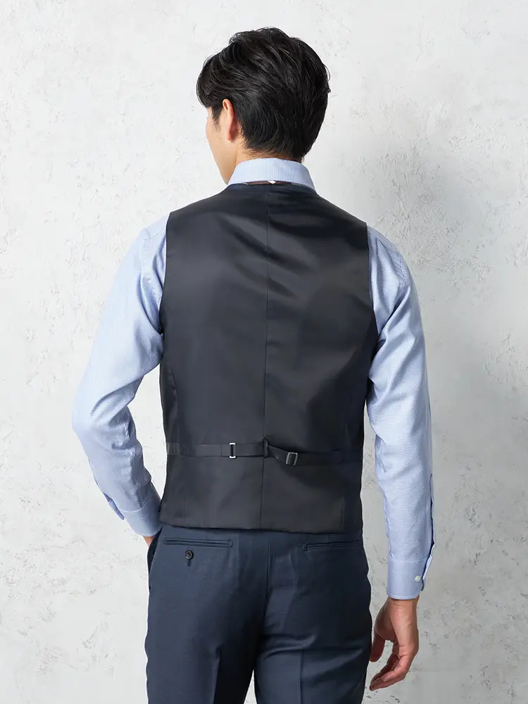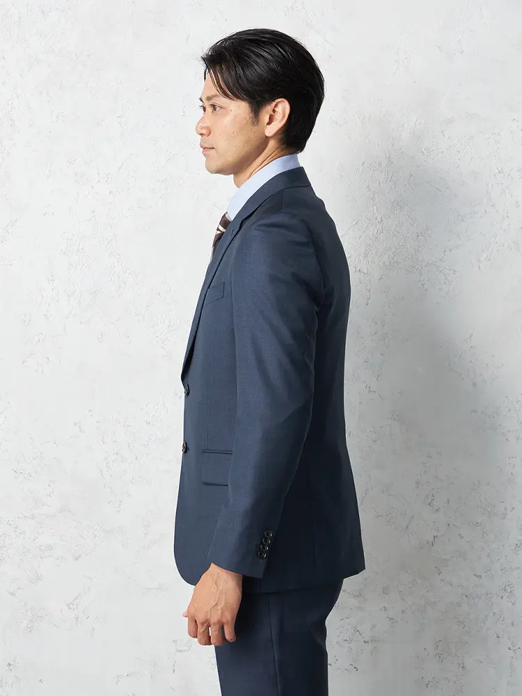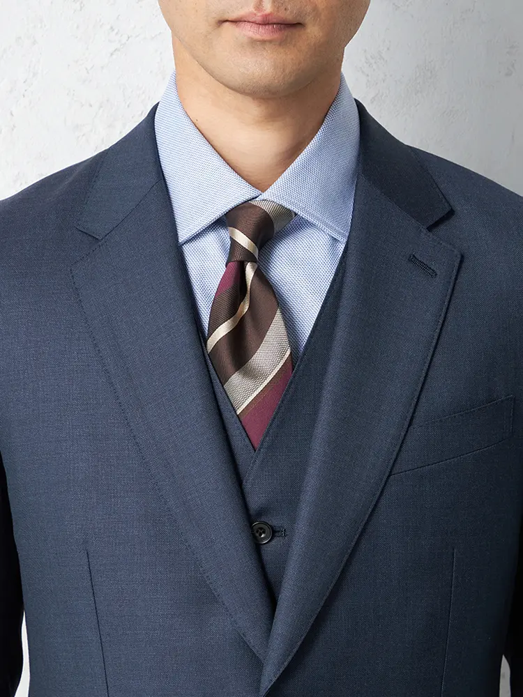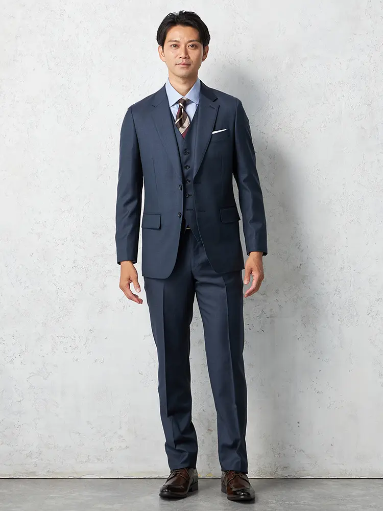大人の着こなしを演出するセンターベントのノータックスリーピーススーツ。