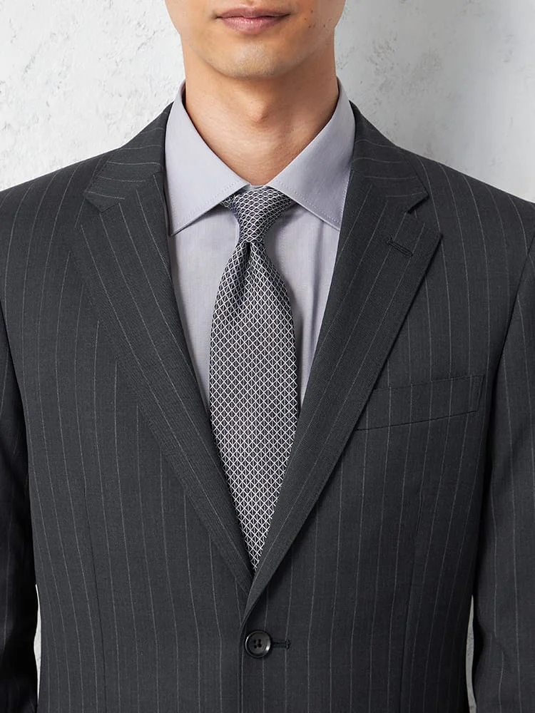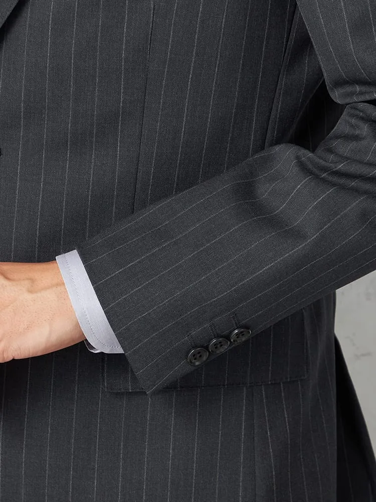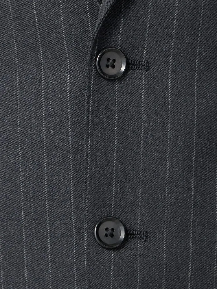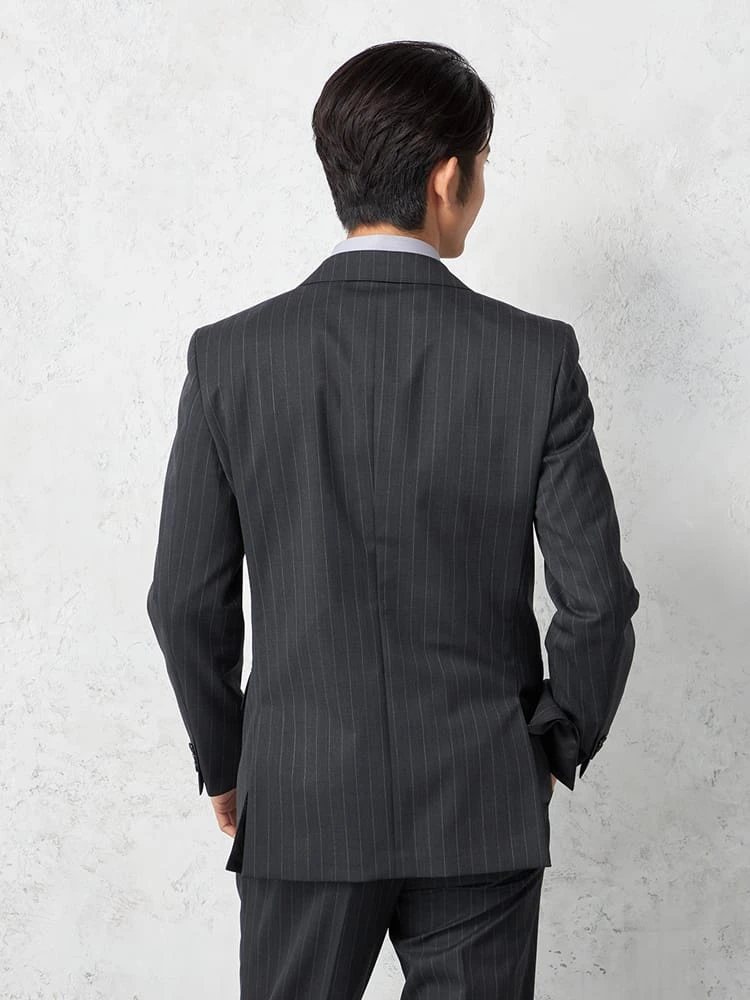 【ウール100%】スーツ 2つボタン イタリア製生地 グレー ストライプ リッケンバッカーホワイト