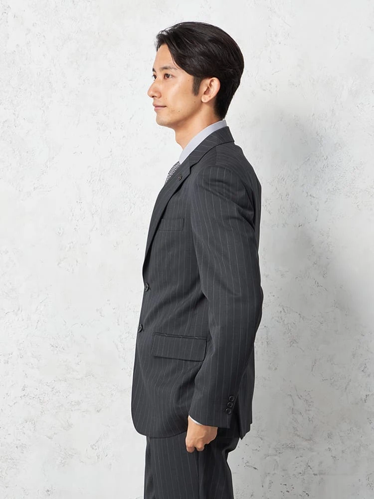 【即納】【WEB限定】スーツ2つボタンブラックシャドウストライプ上下ウォッシャブル3シーズン対応