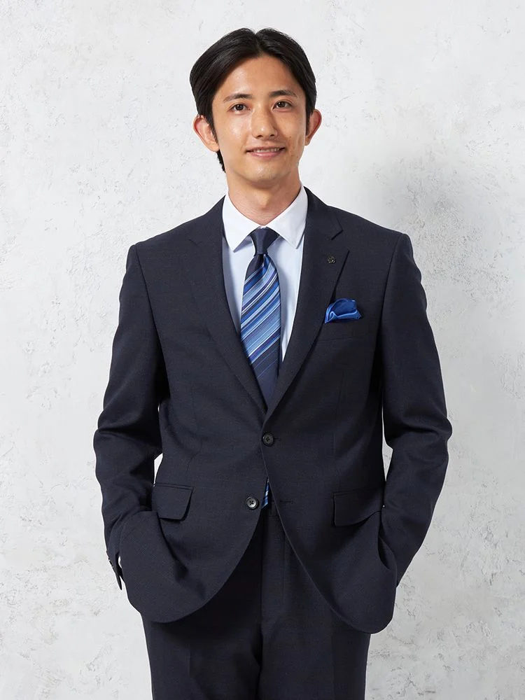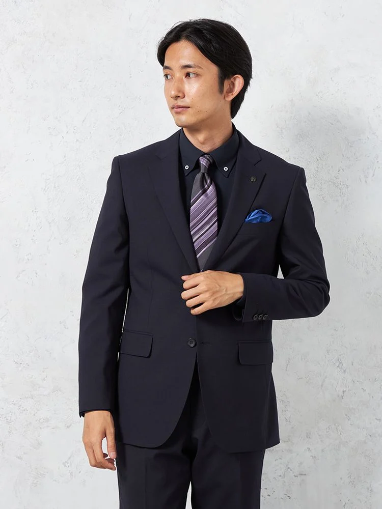 【即納】【WEB限定】スーツ2つボタンネイビーシャドウストライプ上下ウォッシャブル3シーズン対応