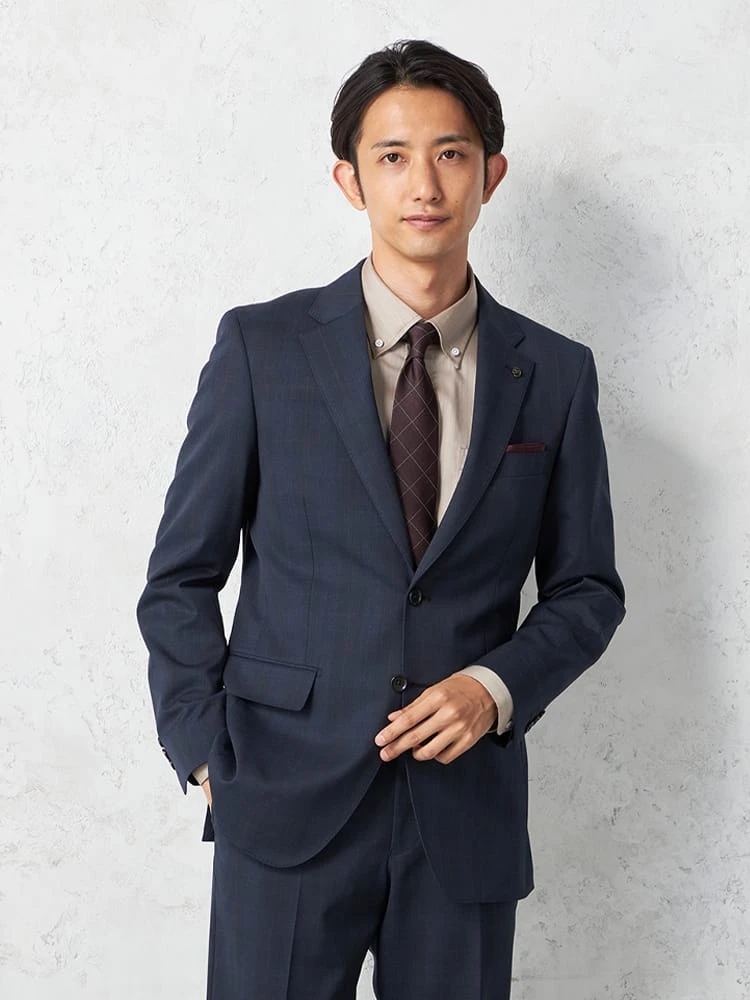 ラペルの幅やポケット仕様などはベーシックで、取り入れやすさにも配慮した一着。