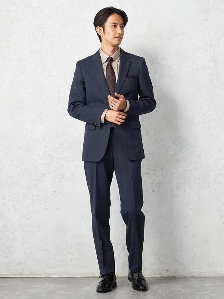 【ウール混】スーツ 2つボタン イタリア製生地 ネイビー チェック リッケンバッカーホワイト