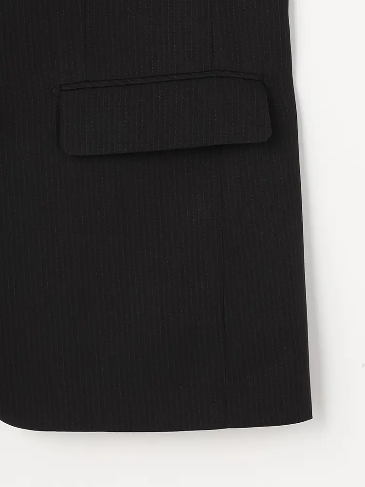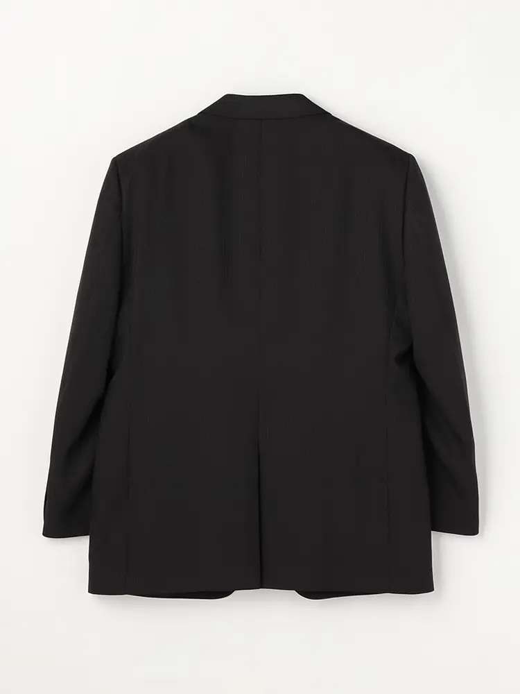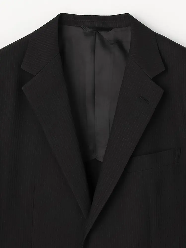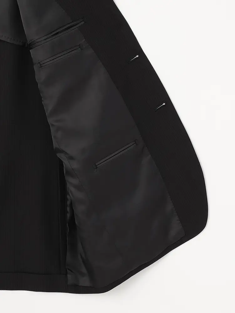 【ウール100%】スーツ 2つボタン イタリア製生地 ブラック シャドウストライプ リッケンバッカーホワイト