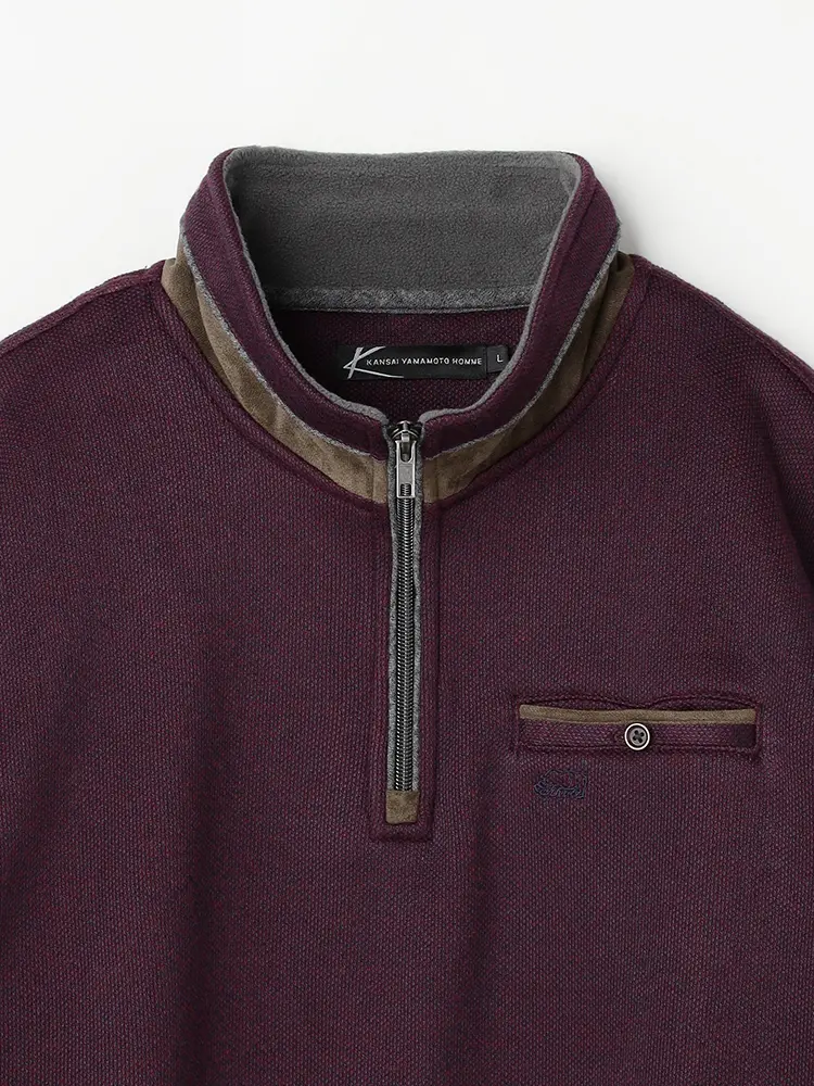 【カンサイ・ヤマモト】 インレイ起毛ジップトレーナー カジュアルインナー 秋冬(ワイン)