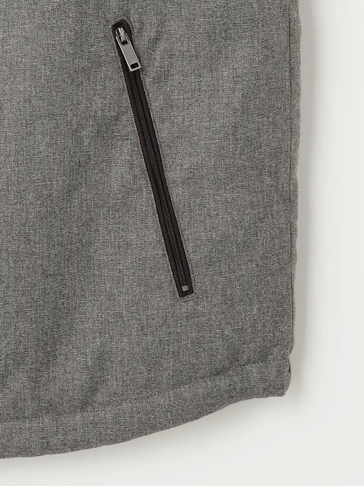 【カンサイ・ヤマモト】リバーシブル中綿ベスト カジュアルアウター 無地 秋冬(M.グレー)