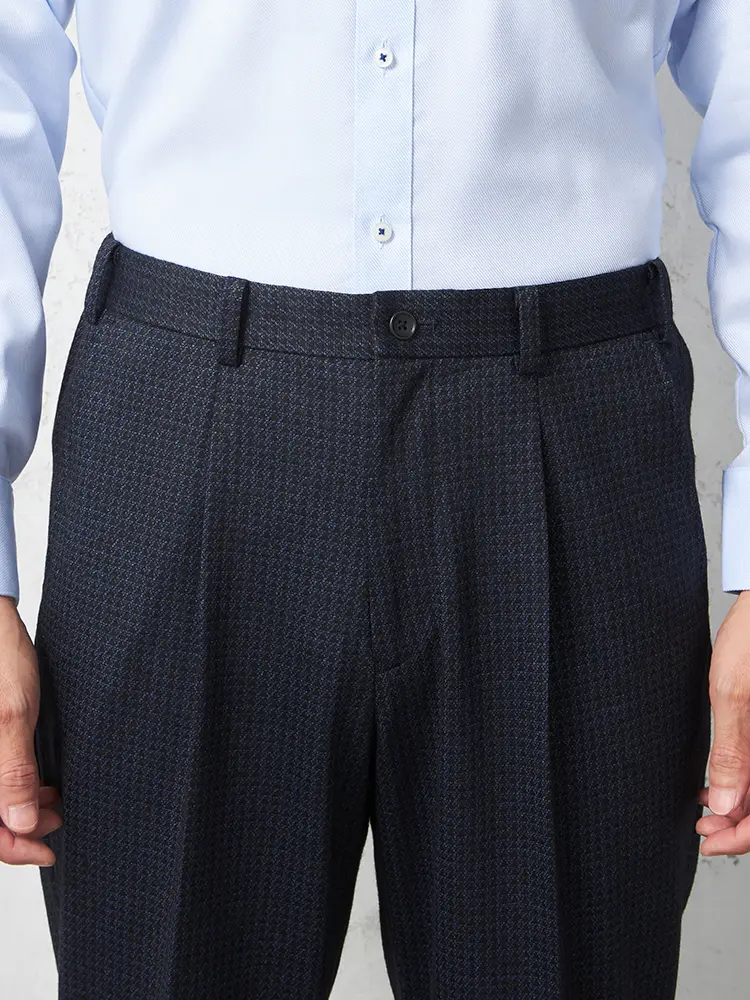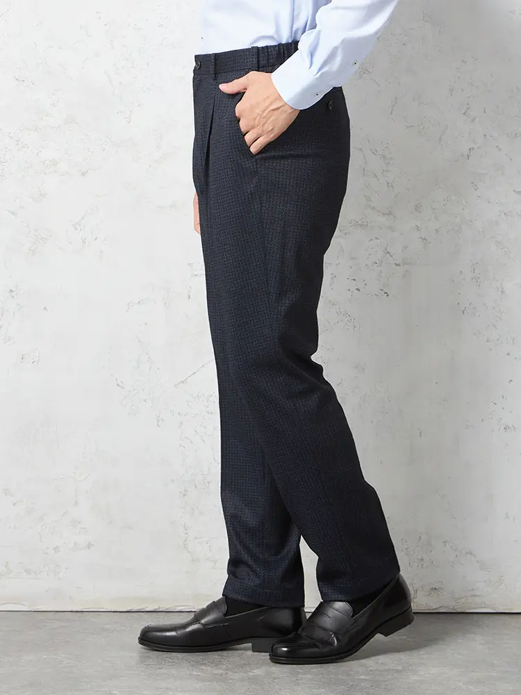 【ウォッシャブル】パンツワンタックウエストストレッチ千鳥格子リッケンバッカー秋冬