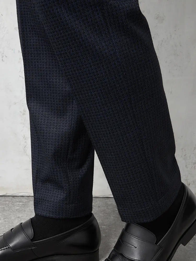 【リッケンバッカーブラック】 ウールジャージセットアップ パンツ 千鳥格子 上下ウォッシャブル ワンタック 秋冬(C.グレー)