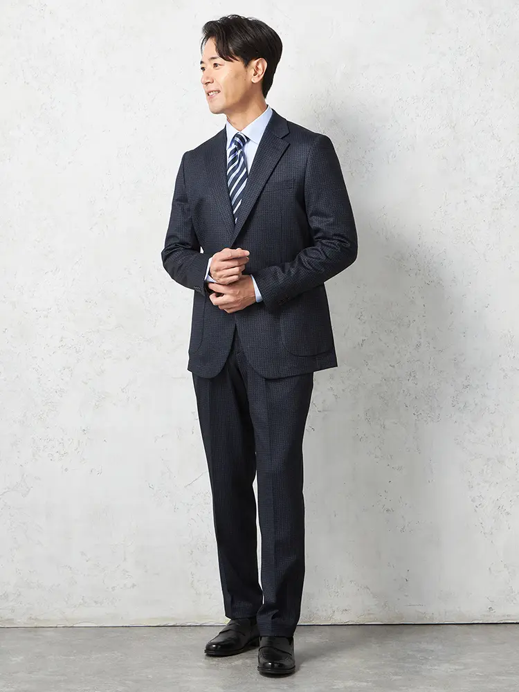 【リッケンバッカーブラック】 ウールジャージセットアップ ジャケット 2つボタン 千鳥格子 上下ウォッシャブル 秋冬(ネイビー)