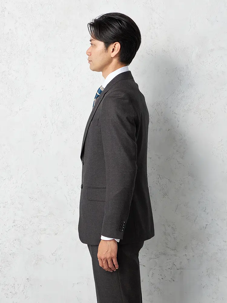 【リッケンバッカーホワイト】 ジョンフォスター スーツ 2つボタン チェック ノータック 秋冬(C.グレー)