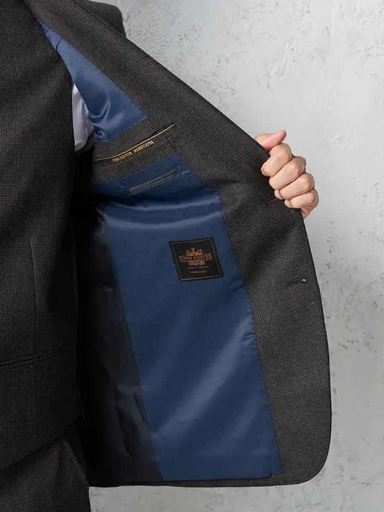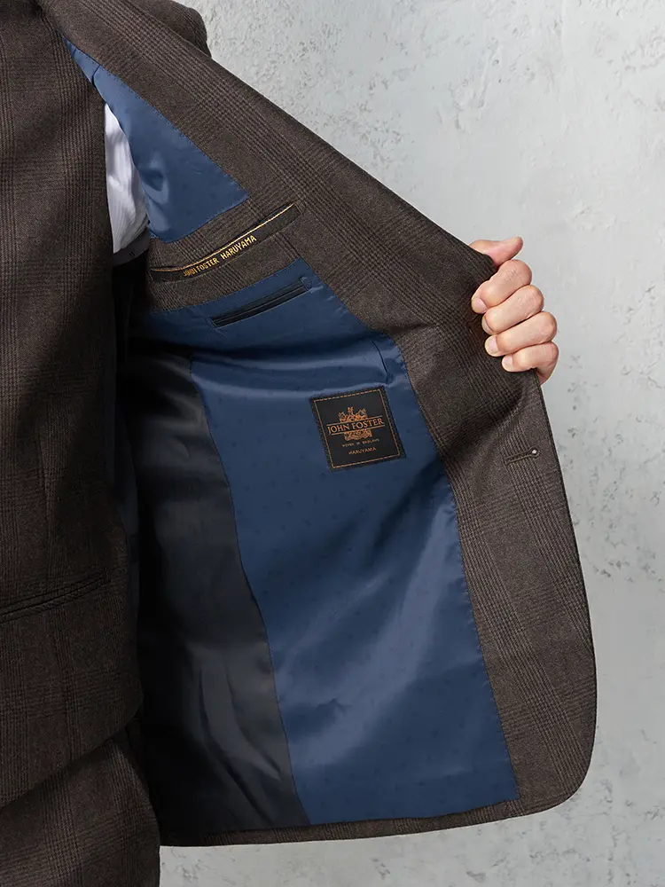 英国名門ジョンフォスターの生地を使用した、はるやま創業70周年記念特別モデル。