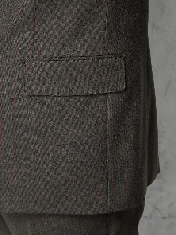 【リッケンバッカーホワイト】 ジョンフォスター スーツ 2つボタン カーキー ストライプ ノータック 秋冬
