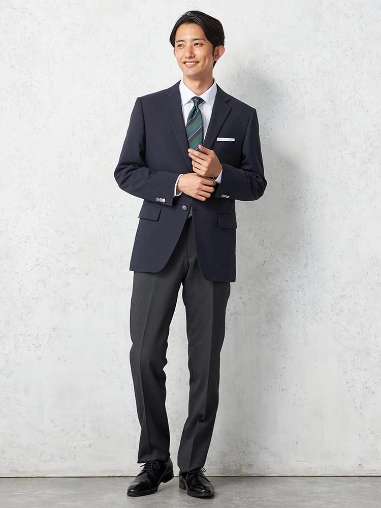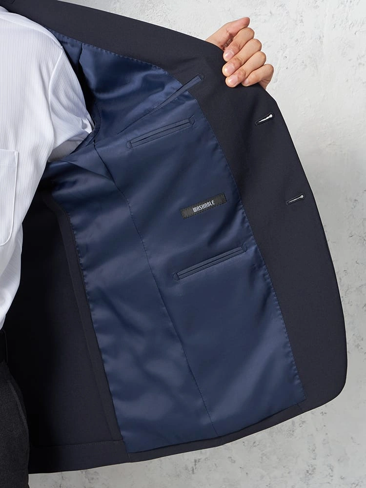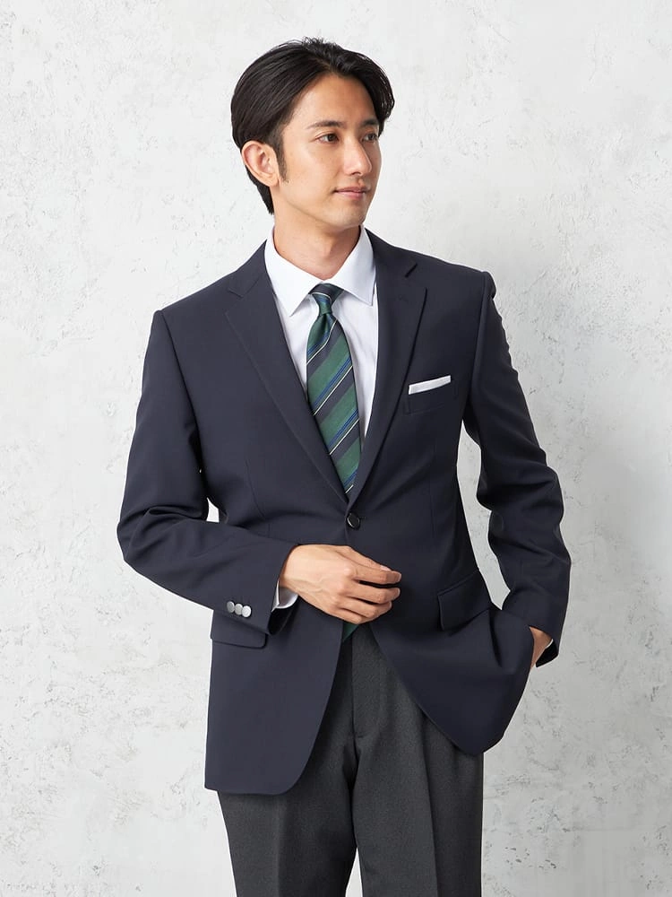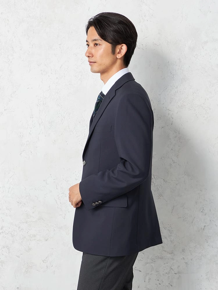切り込みが1本のセンターベントデザインです。細身でスッキリとしたシルエットが特徴で、快適な着心地を提供します