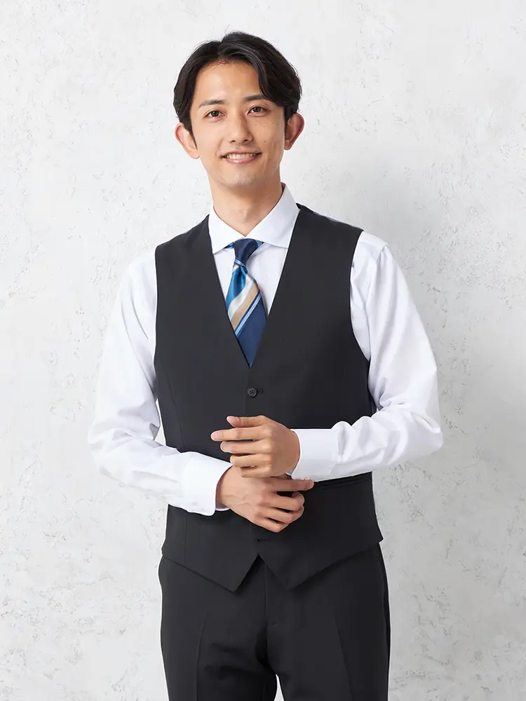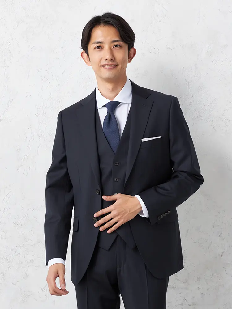 フレッシャーズ向け特別企画、高品質ウールを使用したスリーピーススーツです。